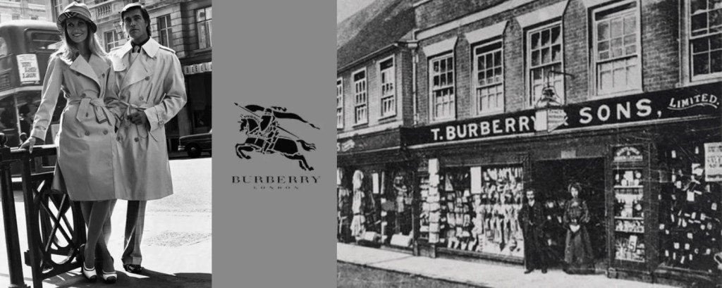 La Burberry surge en 1856 en el centro de Londres, fundada por Thomas Burberry a los 21 años de edad. Su propuesta fueros los diseños de ropa para usar al aire libre, y fue en 1880 que revolucionó la prenda gabardina, con su tela «algodón gabardina» y resistente al agua, fue un éxito total y lo colocó en la cima de popularidad en la industria de la moda en Reino Unido. En 1912, al estallar la Primera guerra mundial, Burberry lanzó lo que sería su producto definitivo que sería el ícono de la empresa el trench coat, una prensa impermeable, resistente y duradera utilizada por los soldados en las trincheras durante la guerra.